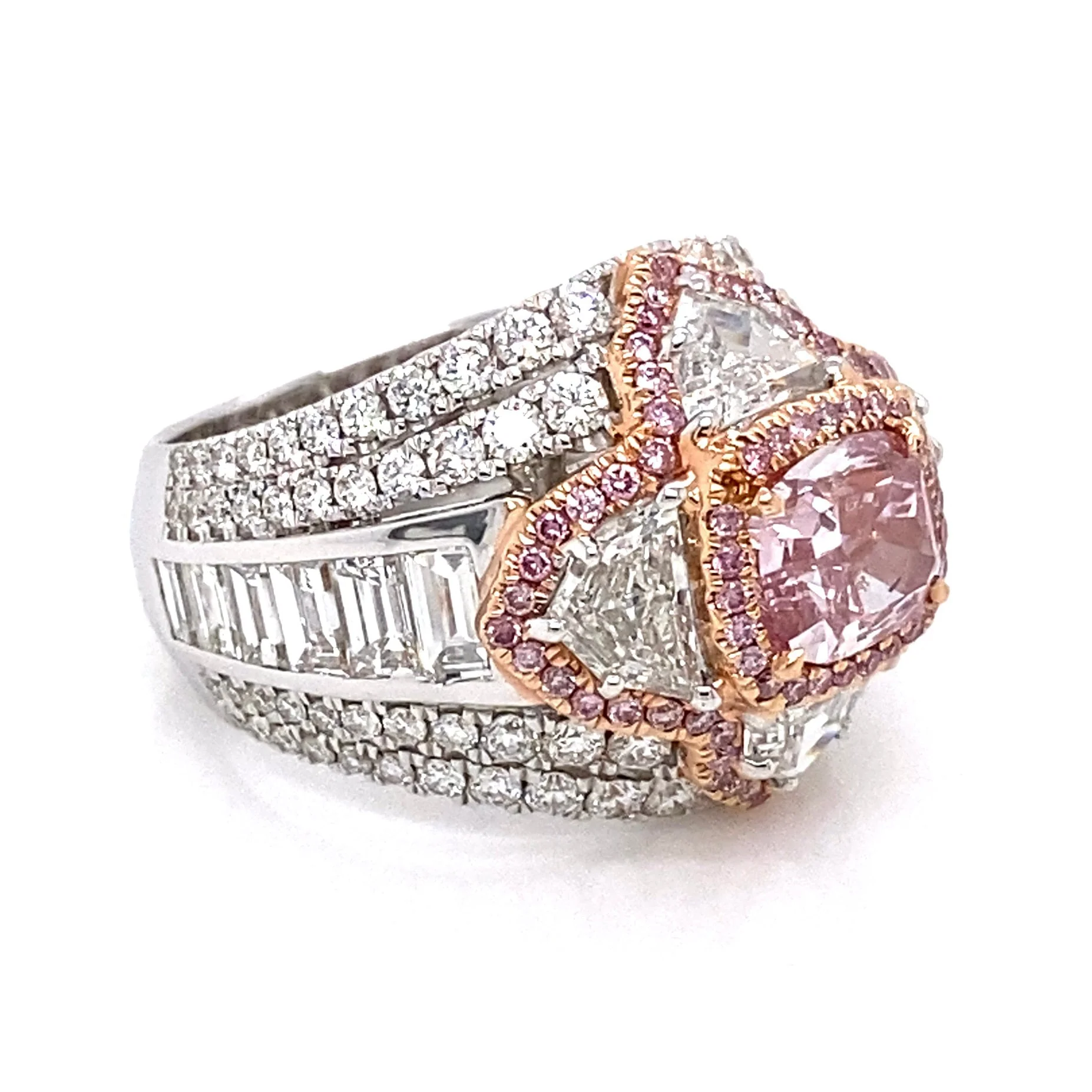 HEIDI 5 CARAT NATURAL PINK CUSHION CUT FANCY INTENSE PURPLISH PINK DIAMOND ANNIVERSARY RING 18K WHITE GOLD GIA CERTIFIED 2CT BY MIKE NEKTA