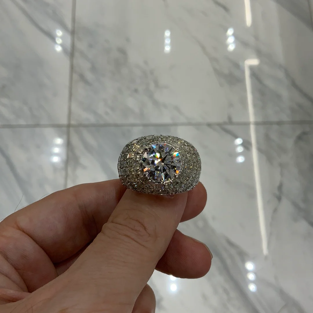 Latice 17 Carat G VS1 Round Brilliant Chandelier Ring in 14k White Gold Men’s Diamond Ring
