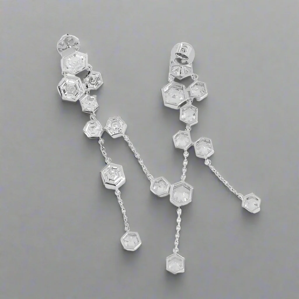 Leeron 9 Carats Hexagonal Geometric Lab Grown Diamond Drop Earrings in 14K White Gold