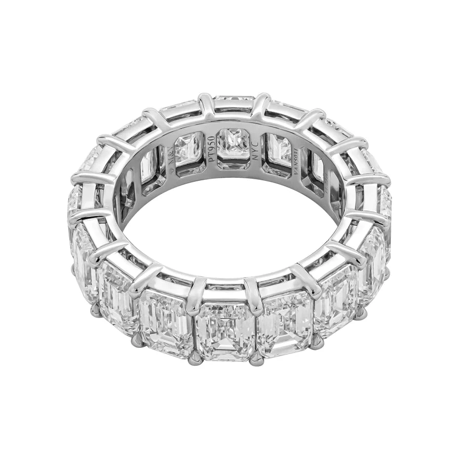 The LUISA Wedding Anniversary eternity band features 16 Emerald Cut 70 pointer diamonds weighing a total of approximately 11.23 carats, Shared Prong set in Platinum.